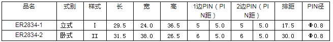 以上为公司常用骨架样式,其它款式暂未列入其中,欢迎咨询。本公司可按客户要求定制各种规格ER2834高频变压器。